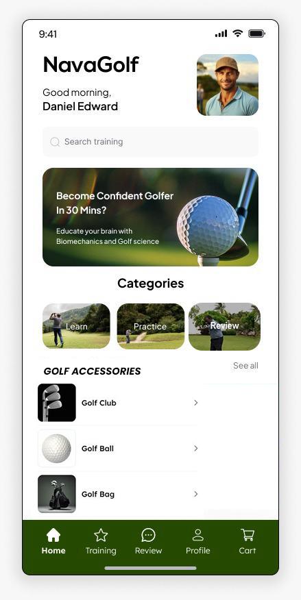 1. NavaGolf Smartphone App: This cutting-edge application provides video lessons that educate golfers’ brains on “clubhead RPM” and techniques to increase it. The lessons are firmly rooted in biomechanics and golf science, enabling the brain to naturally execute the body actions required for golf ball striking, tailored to each individual’s fitness level.